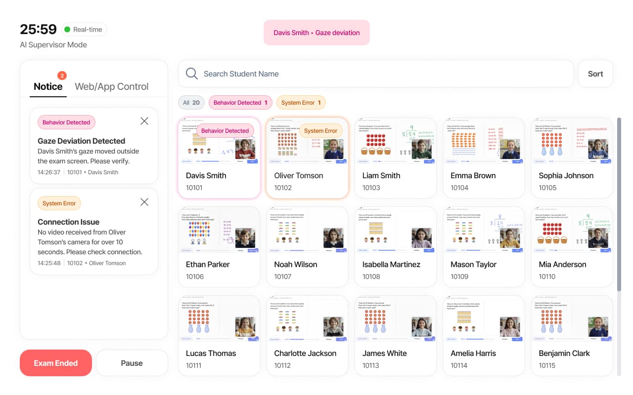 AI ensures a fair test environment. Maintaining integrity in tests, quizzes, and other activities.