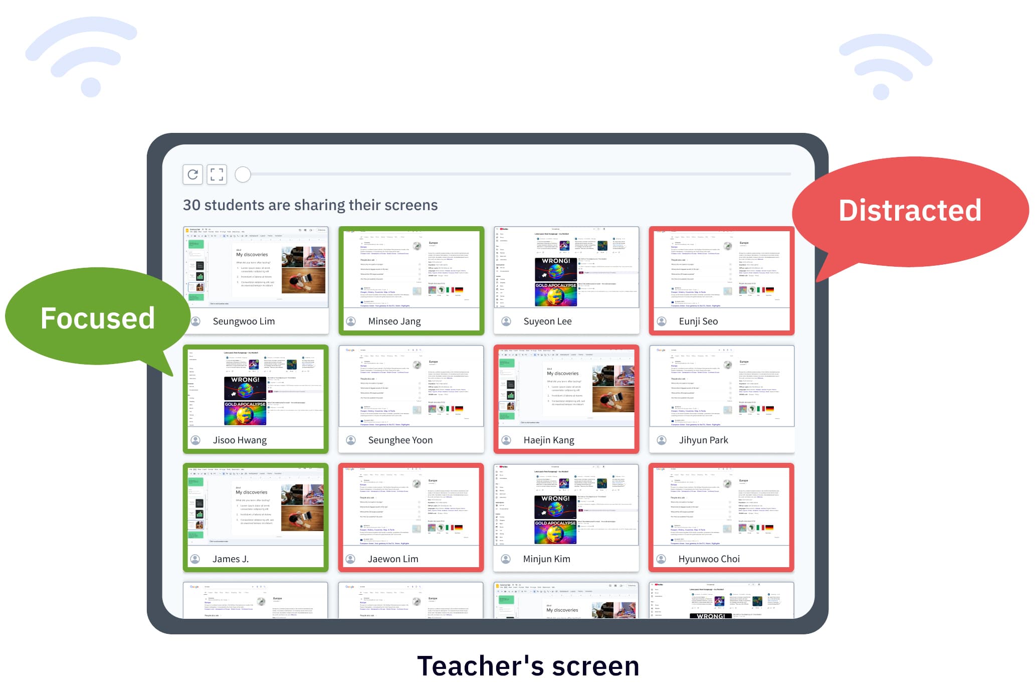 Green border = Engaged in the lesson
